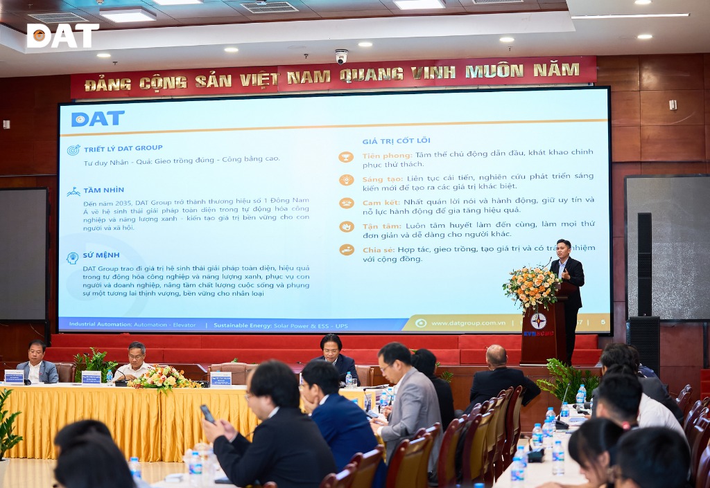 DAT Group là một trong những đơn vị tiên phong đưa điện mặt trời vào Việt Nam từ năm 2011 – thời điểm thị trường còn chưa có khái niệm rõ ràng về điện mặt trời. Đến nay, DAT Group đã cung cấp ra thị trường khoảng 1 GW thiết bị (pin lưu trữ điện & inverter) và trực tiếp triển khai EPC hơn 100 MW điện mặt trời mái nhà xưởng công nghiệp trên toàn quốc. Chính uy tín và kinh nghiệm thực tiễn này đã giúp DAT Group được tin tưởng mời tham dự và chia sẻ góc nhìn tại Diễn đàn