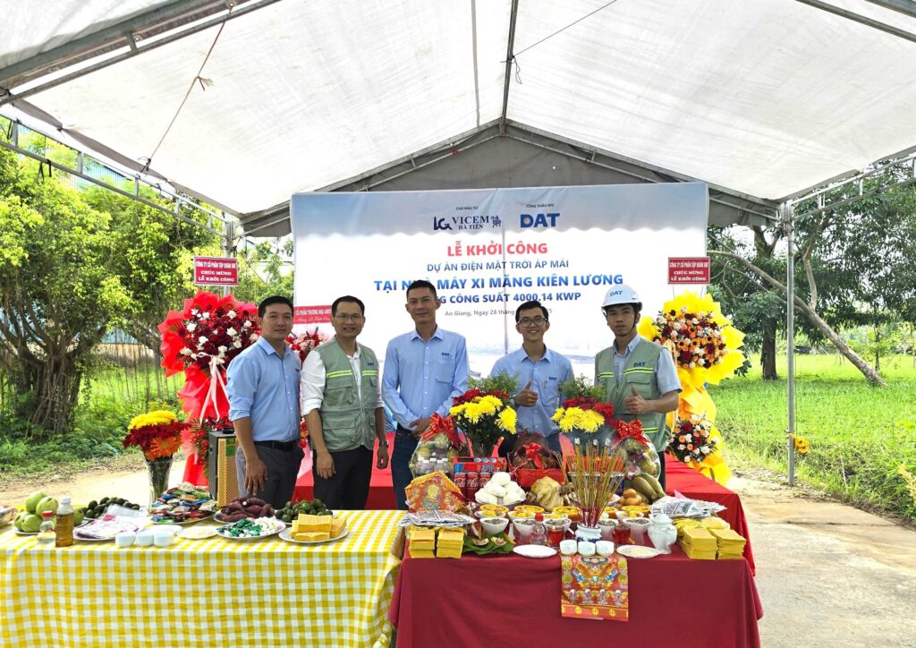 Được VICEM Hà Tiên tin tưởng lựa chọn làm tổng thầu EPC điện mặt trời, DAT Group đảm nhận toàn bộ quá trình thiết kế, cung cấp thiết bị, thi công và vận hành hệ thống. Với kinh nghiệm triển khai nhiều dự án quy mô lớn trong lĩnh vực công nghiệp nặng, DAT Group đã tối ưu giải pháp phù hợp với đặc thù vận hành của nhà máy xi măng – từ kết cấu mái, môi trường bụi clinker, độ rung đến yêu cầu nghiêm ngặt về an toàn điện và an toàn thi công.
