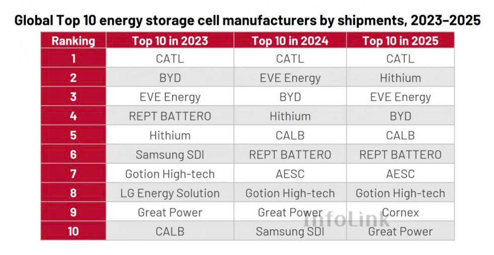 Trong bối cảnh thị trường chuyển từ dư cung sang khan hiếm, việc Great Power vẫn duy trì vị thế. Thương hiệu luôn nằm trong Top 10 nhà sản xuất cell lưu trữ năng lượng hàng đầu thế giới theo sản lượng xuất xưởng, giai đoạn 2023 – 2025.